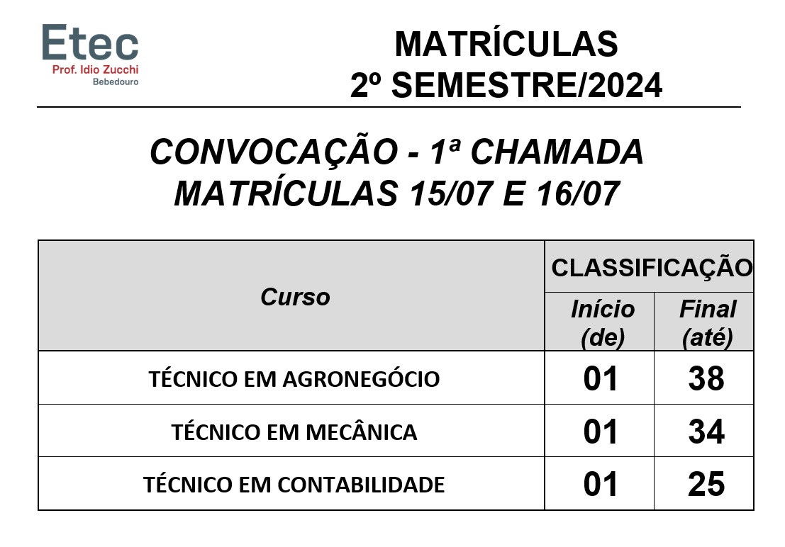 Matrícula - Primeira Chamada 2º Semestre 2024