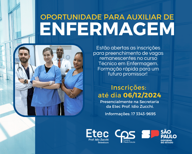 OPORTUNIDADE PARA AUXILIAR DE ENFERMAGEM