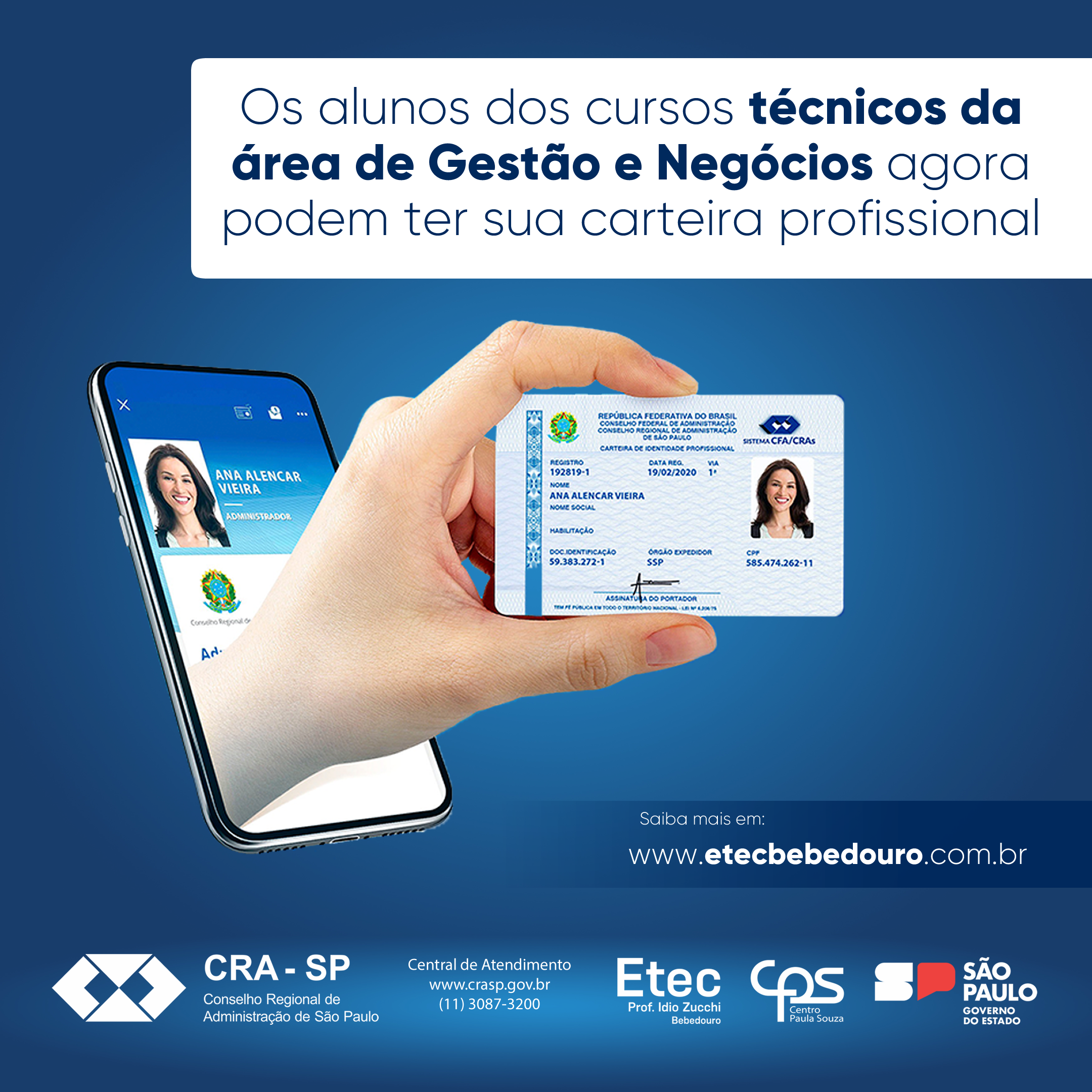 Os alunos dos cursos técnicos da área de gestão podem ter sua carteira profissional